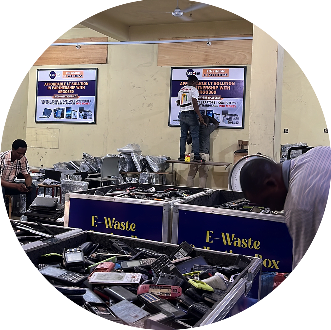 Via ARGO360 is het mogelijk om het equivalent aan E-waste vervuiling op te halen uit gebieden waar Urban Mining onmogelijk is. Wij schonen hiermee de aarde op, helpen lokale gezinnen in Afrika aan eerlijk werk, zorgen voor SROI in Nederland en realiseren Urban Mining, waar zelfs plastic stromen gered worden van de verbrandingsoven en een tweede leven krijgen met behulp van 3D printers.